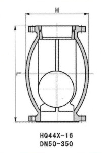 產(chǎn)品名稱: HQ44/45X微阻球形止回閥 產(chǎn)品簡介: 微阻球形止回閥,采用橡膠包皮球為閥瓣,在介質的作用下,可在閥體內(nèi)的滑道上滾動,從而打開或關閉閥門。流量大流阻損失小,密封性能好,消聲關閉,可減小水擊波。水平或垂直安裝均可??捎糜诶渌崴?、工業(yè)及生活污水等管網(wǎng)的水泵出口,防止介質倒流。